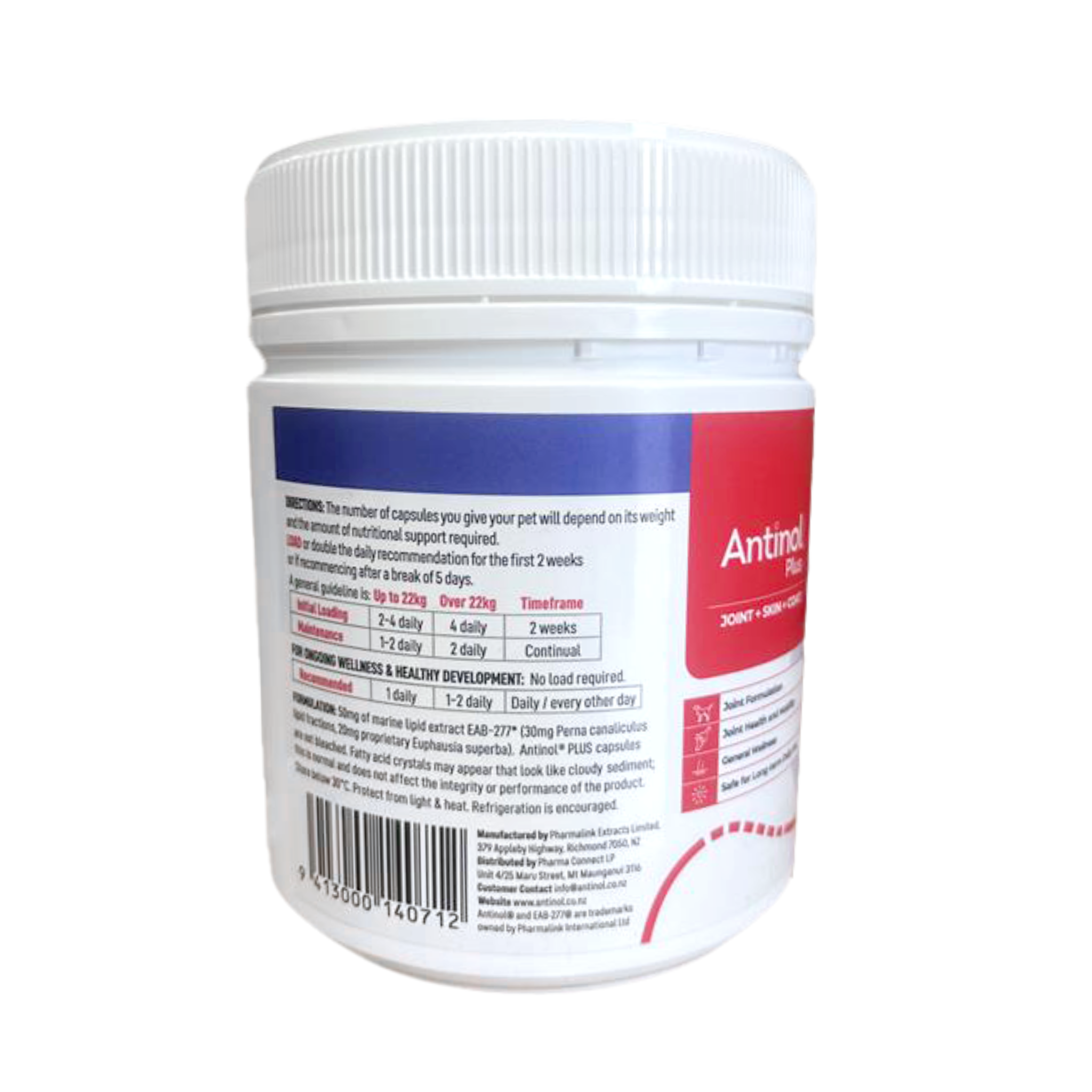 Antinol® Plus is the new and improved formula of New Zealand’s all-natural supplement (Antinol®) which supports dog health, worldwide. Each tiny capsule is made from a blend of marine lipid oils that are fully traceable, sustainably-sourced and free from preservatives and fillers.